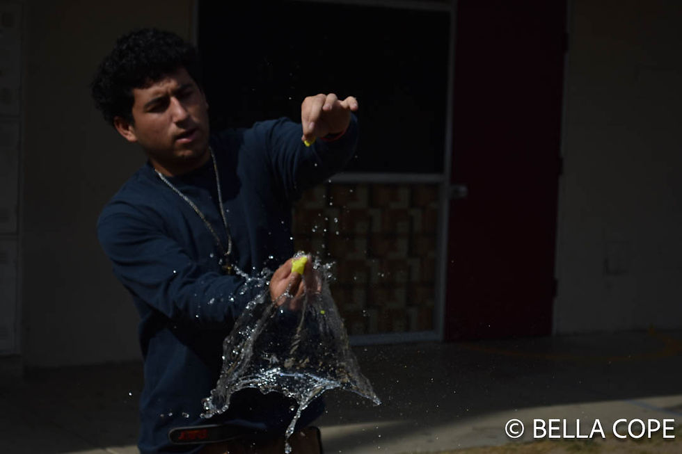 As for the challenge of capturing the water balloon popping when thrown and caught, it was more random. We focused on the person catching